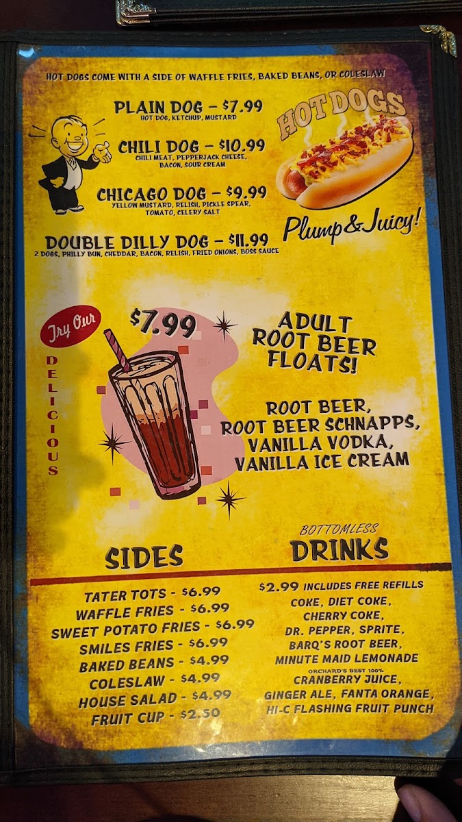 Expect a mix of satisfying pizzas like Mac and Cheese or BBQ Chicken, alongside hearty options such as the Bacon Cheeseburger with Waffle Fries or a Pulled Pork Sandwich served with a fresh house salad. For lighter snacks or a quick kids’ meal, choices like Grilled Cheese or Corn Dogs fit perfectly.